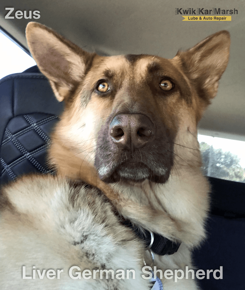 If you come to Kwik Kar Marsh, most likely you’ll see one of the most beautiful German Shepherd Dog’s named Zeus. Zeus is a Liver German Shepherd Dog that is loved by all. His calm demeanor and polite disposition helps Zeus make immediate friends with each and every customer.